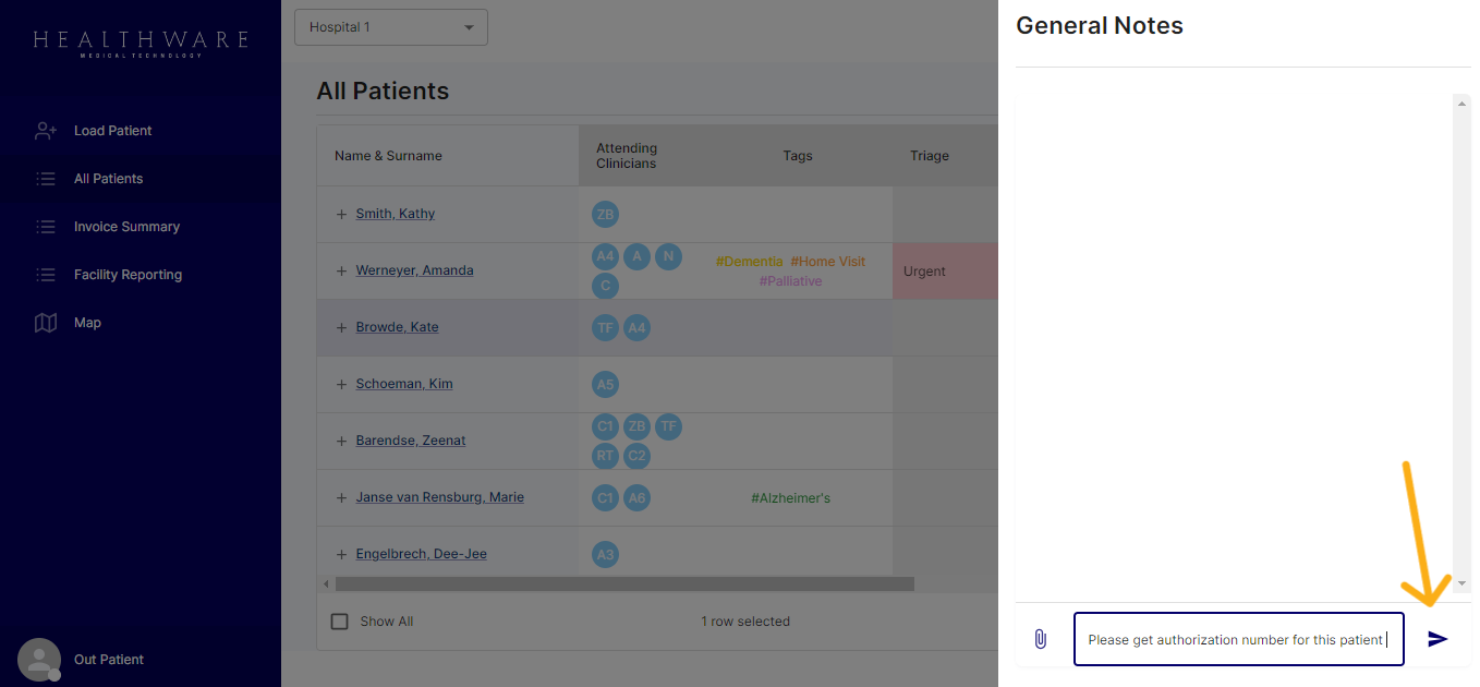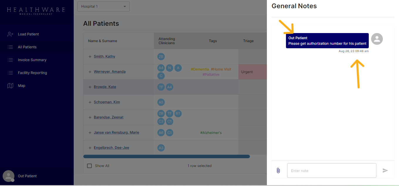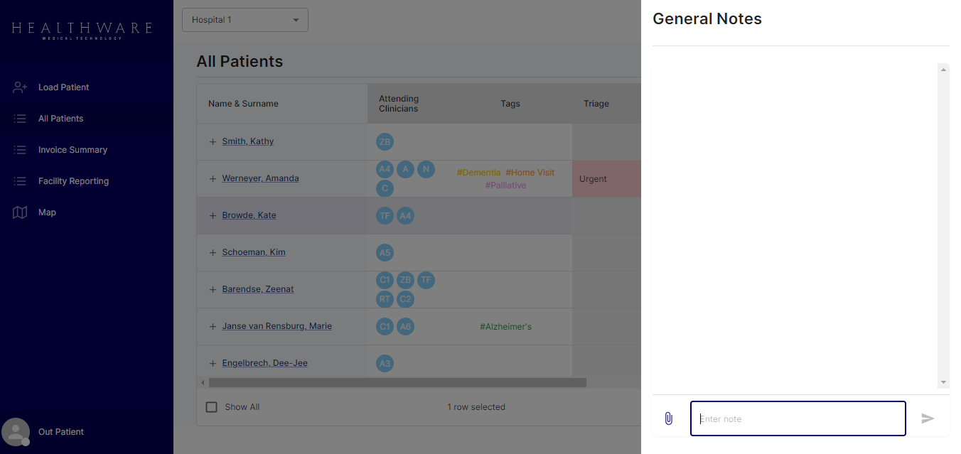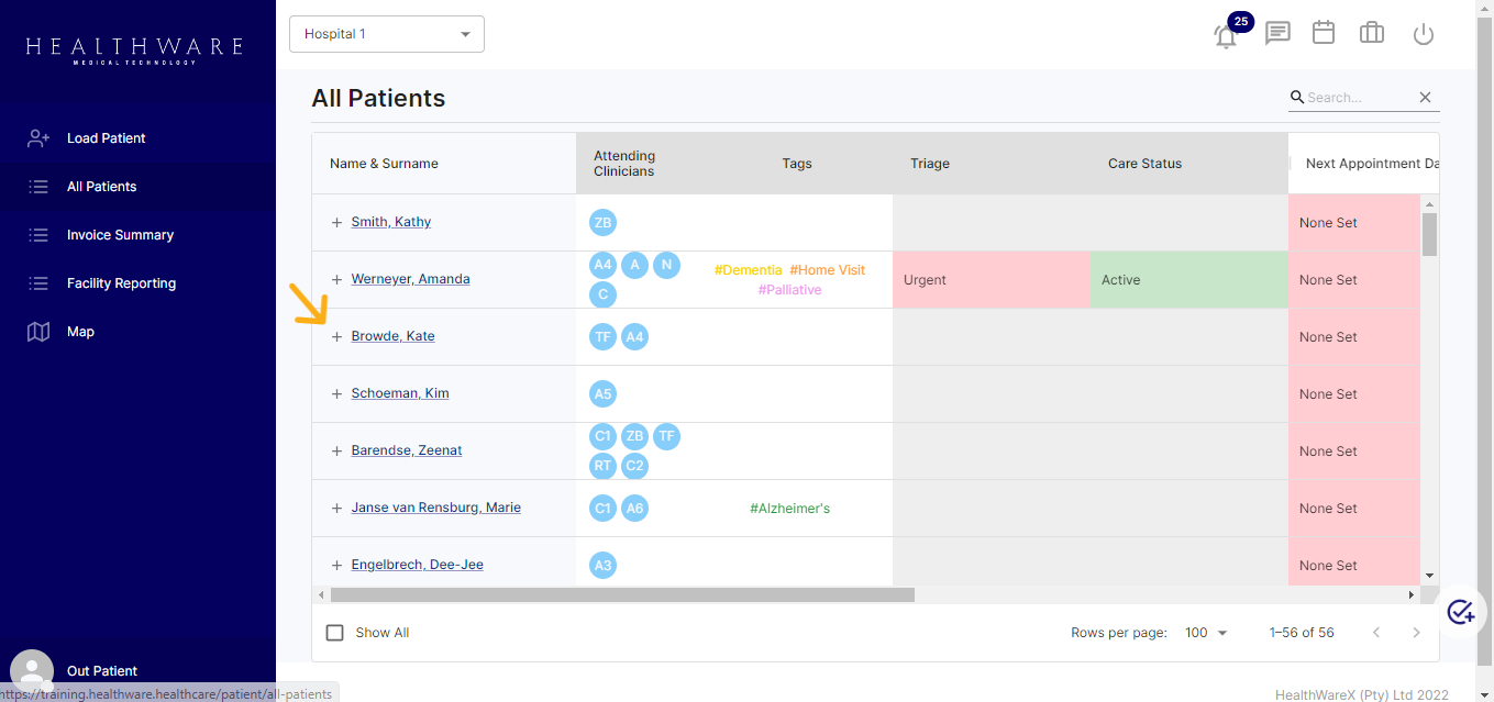 Once you see the list of patients on your screen, you may proceed to click on the little plus sign next to the patients name that you would like to record a general note for.