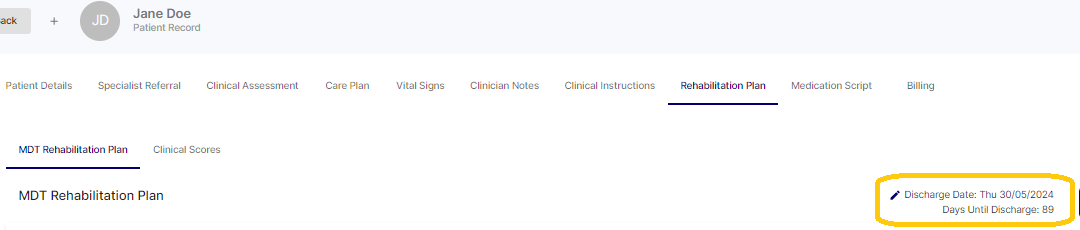 Planned Discharge date is editable on the Rehabilitation Plan Screen, click on the pencil icon to edit the date.