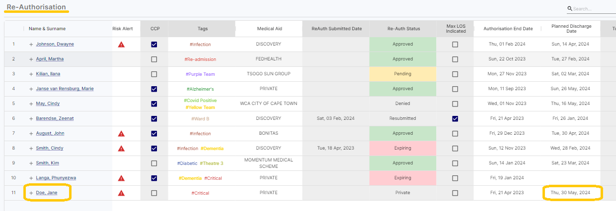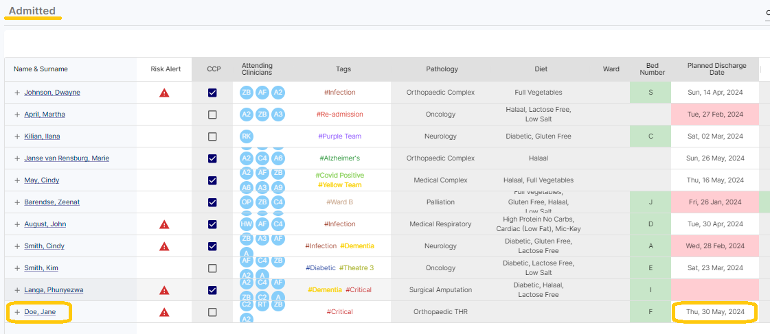 As well as the Planned Discharge Date that appears for the patient on the Admitted and Extension Screen