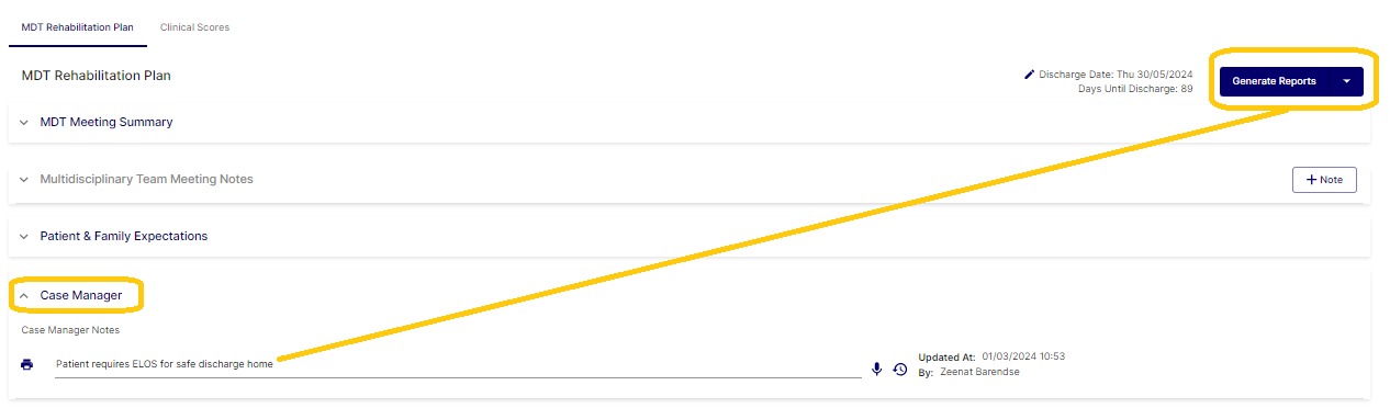 An accordion for Case Manager notes was added, which will populate into all reports generated from the Generate Reports button, if completed. If left blank the field will be ignored when the report is generated as with any of the other fields.