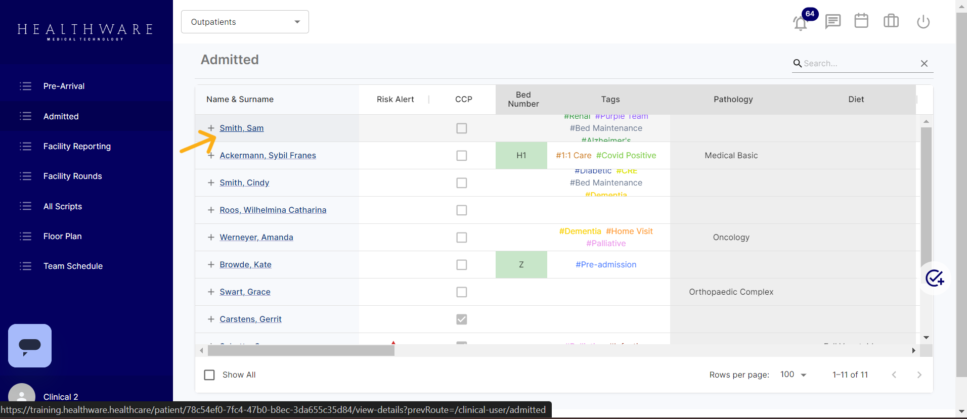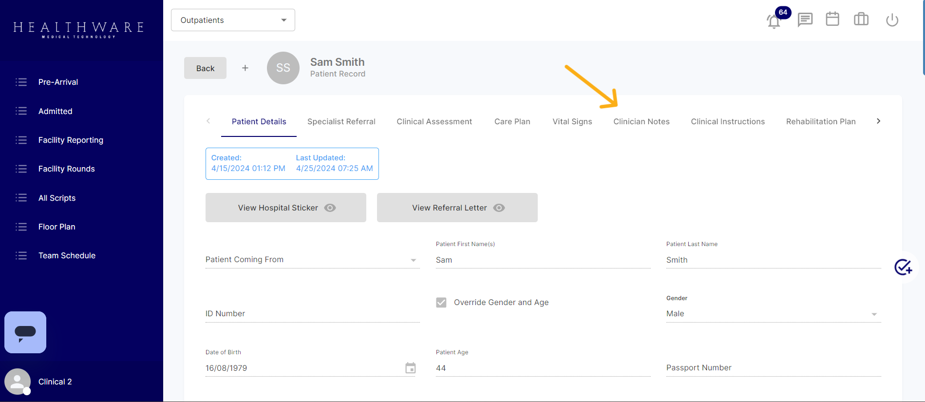 To begin, users should log into Healthware and navigate to the patient's record for whom they need to generate the sick note or consultation record. They can do this by clicking on the patient's name within the system.