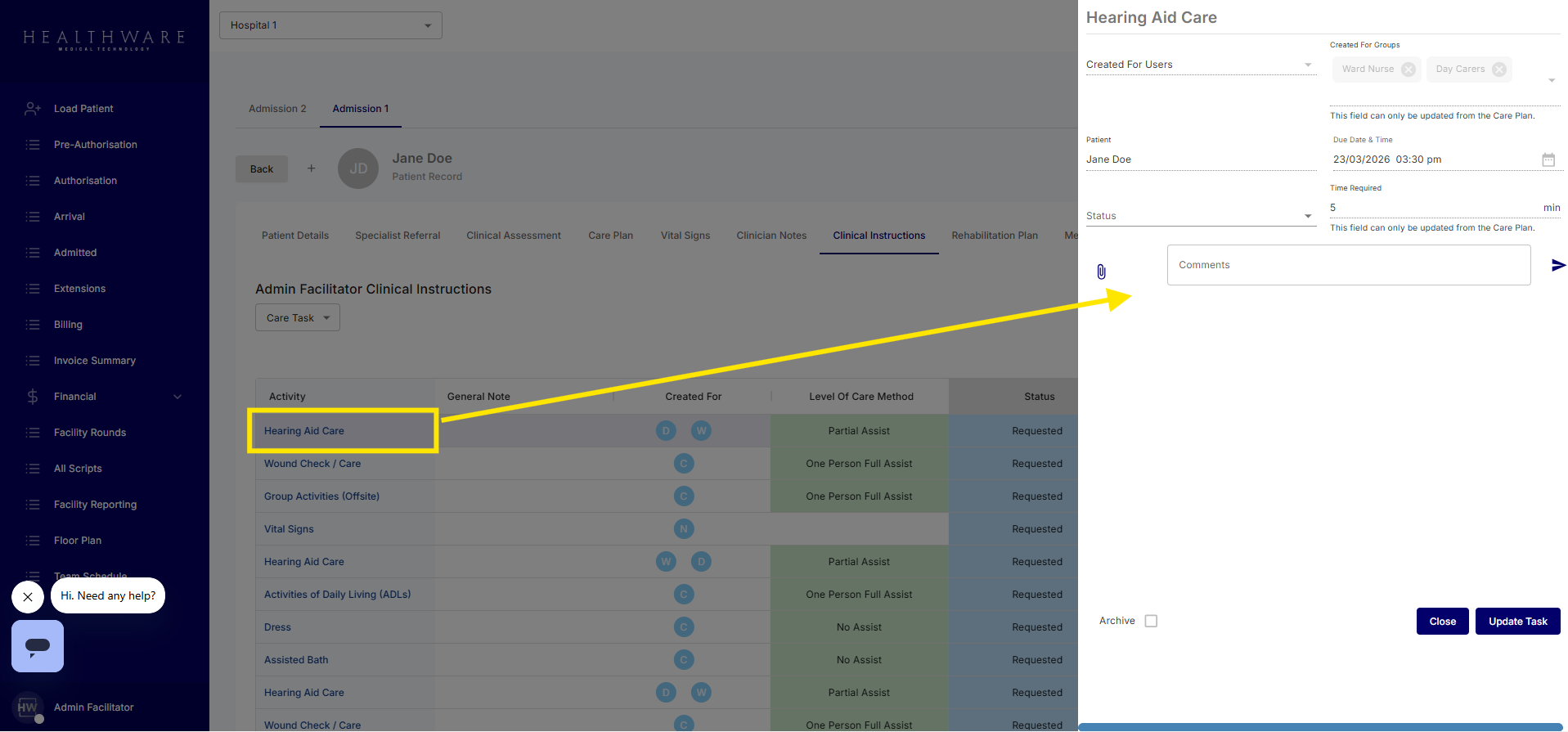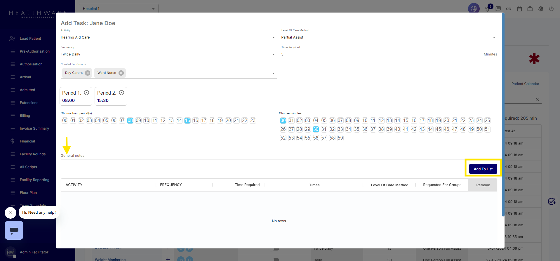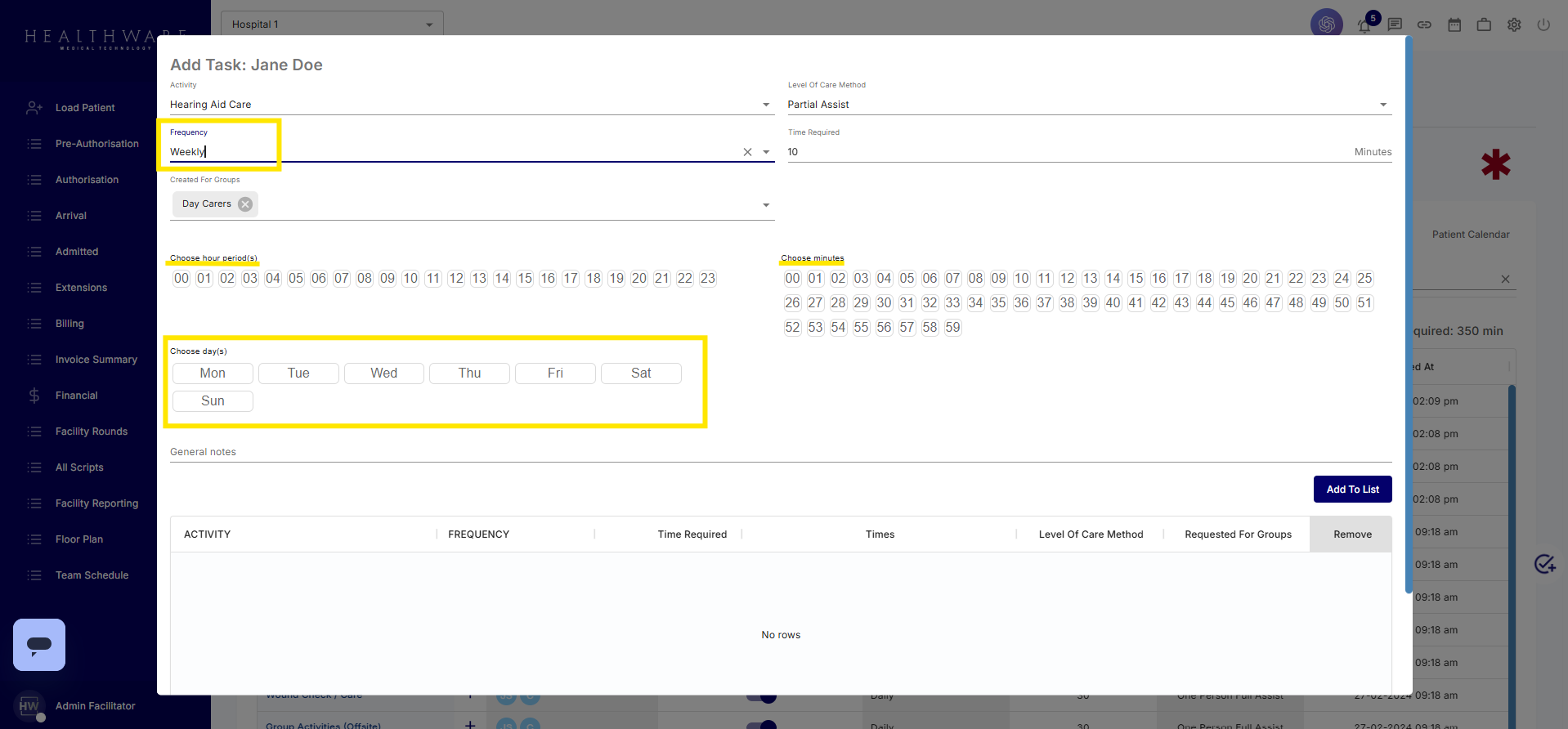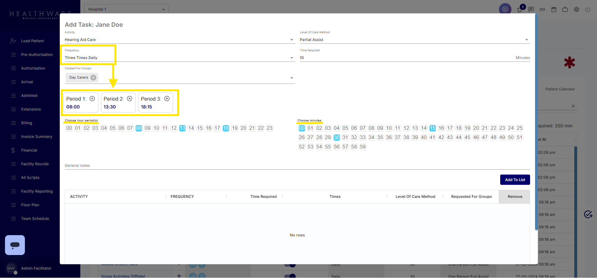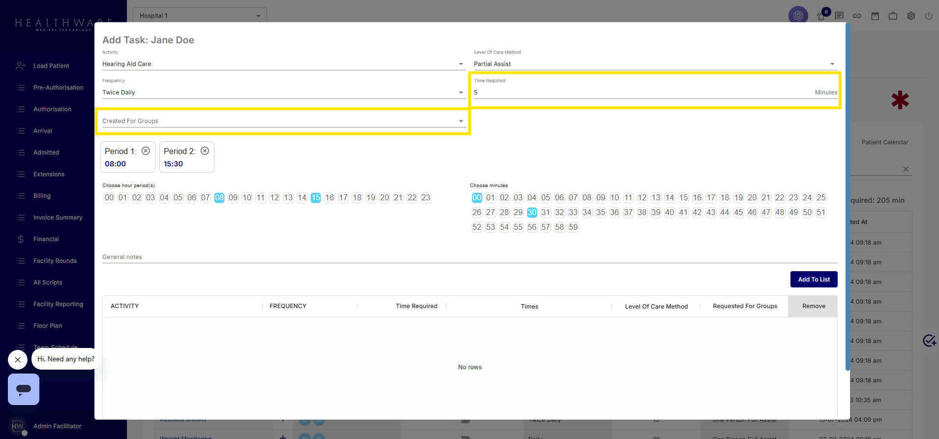 Please note that only the groups assigned to the task will be able to view and update these care tasks from the Facility Rounds screen.