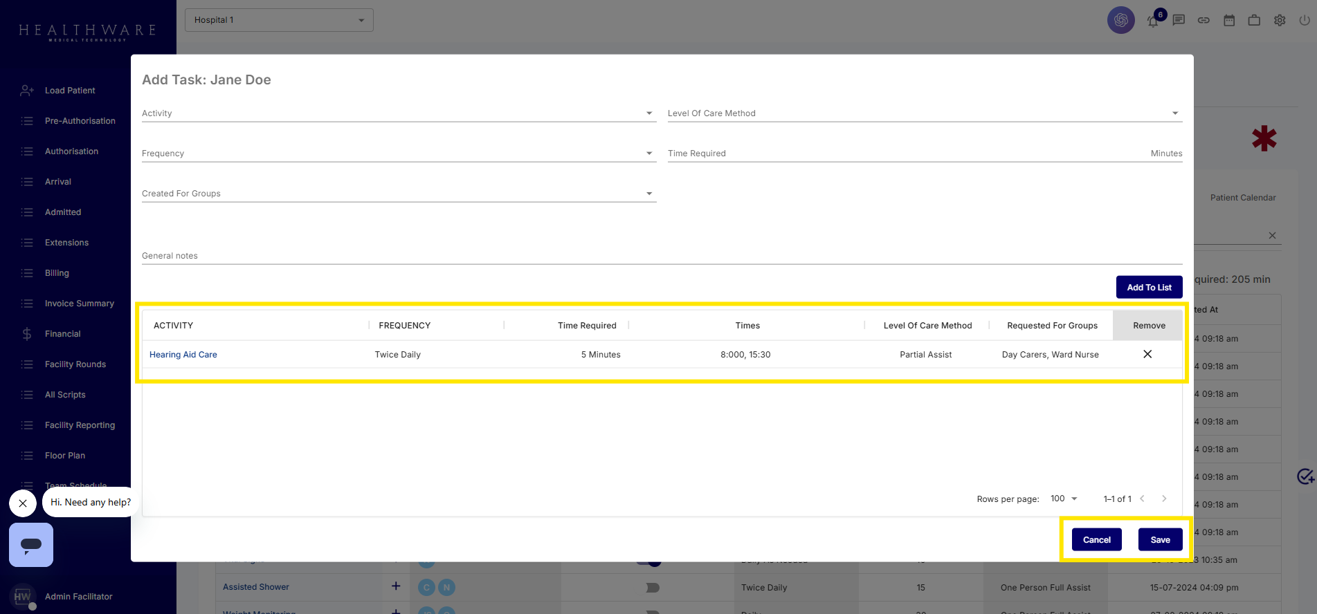 You can add multiple care tasks by repeating the steps above. Once the care plan is complete, scroll down and click Save